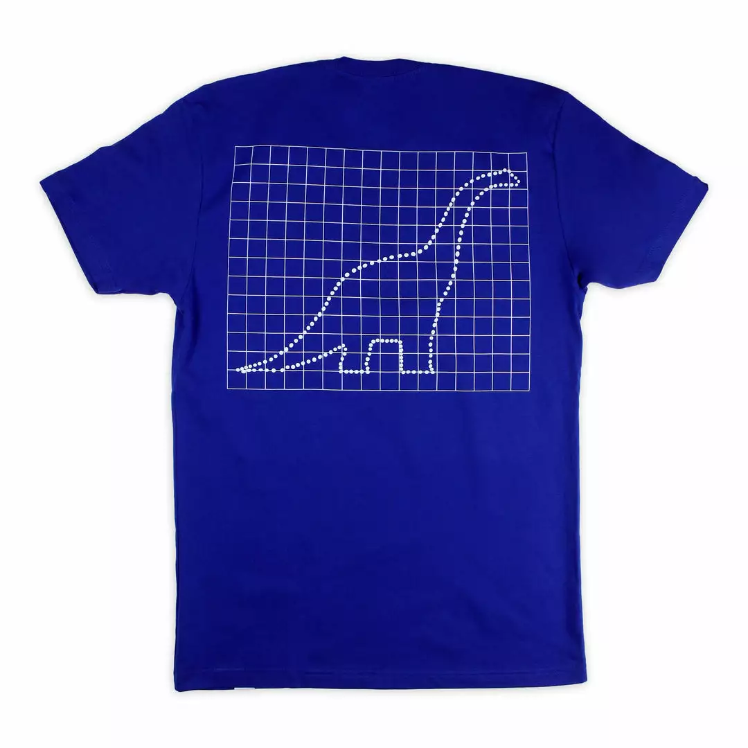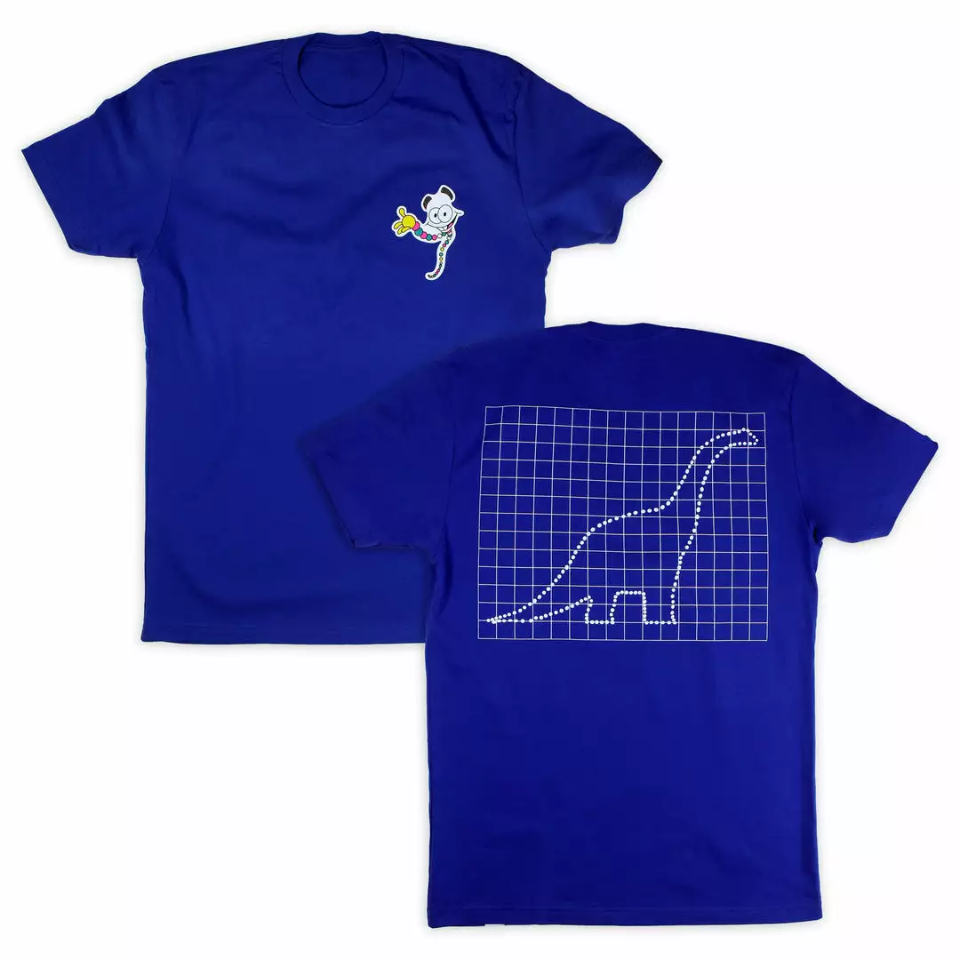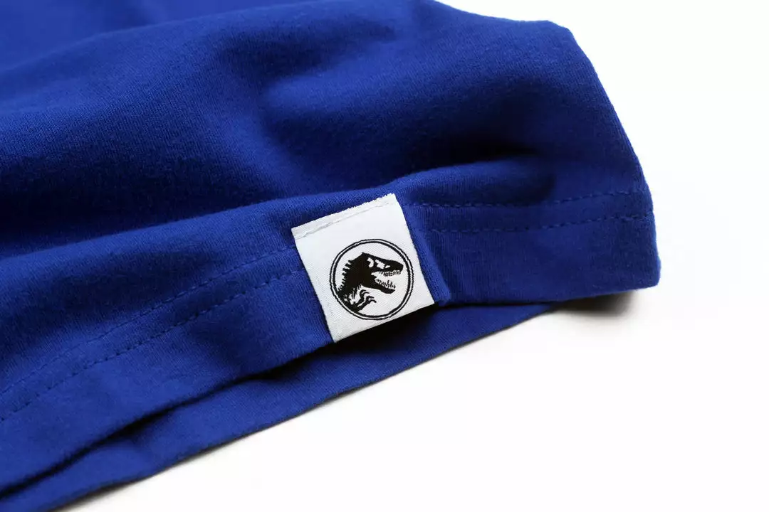 Printed by Impact Merchandising on Next Level 3600 royal blue tee, available in unisex sizes XS-4XL. Includes an official Jurassic Park hem tag and printed interior neck label.