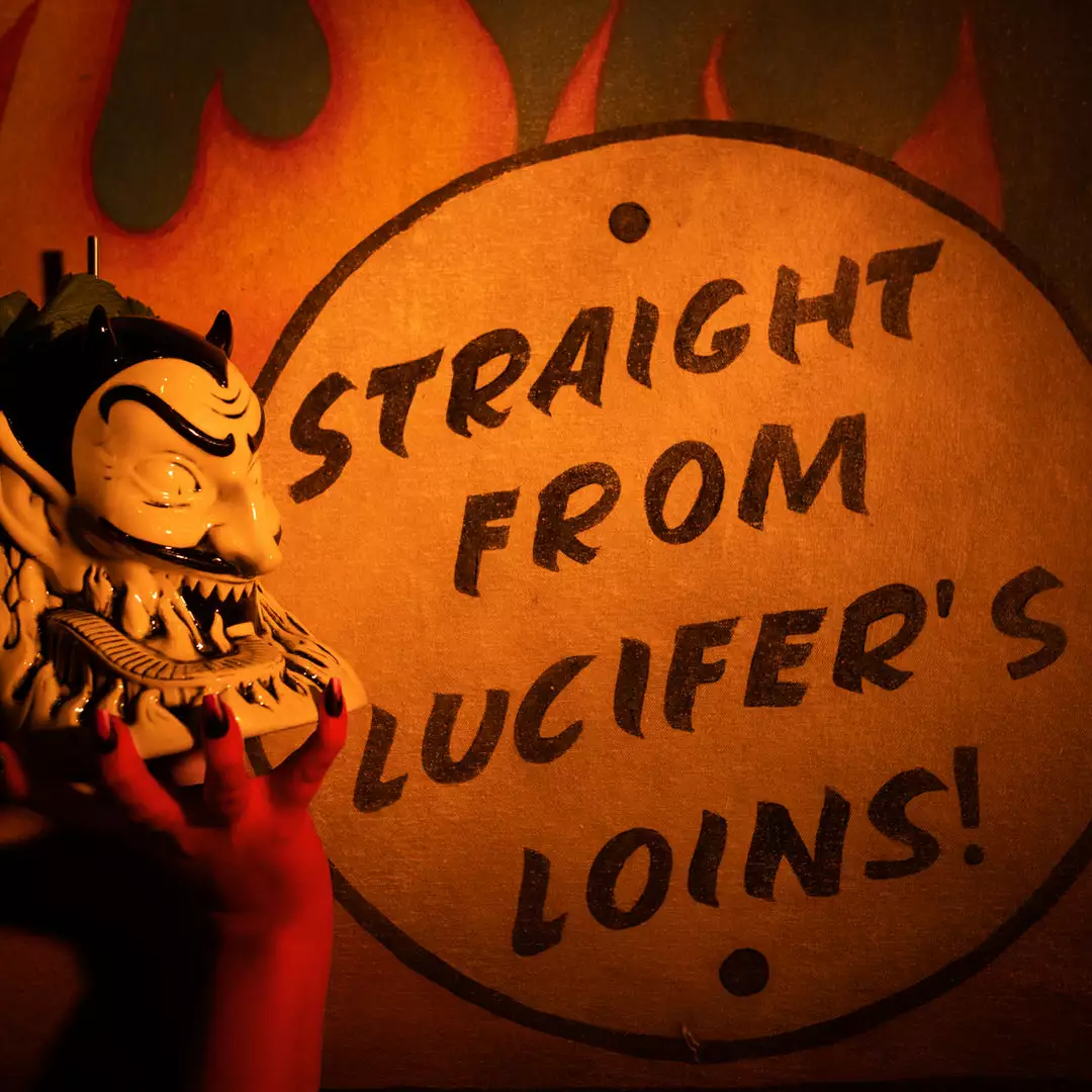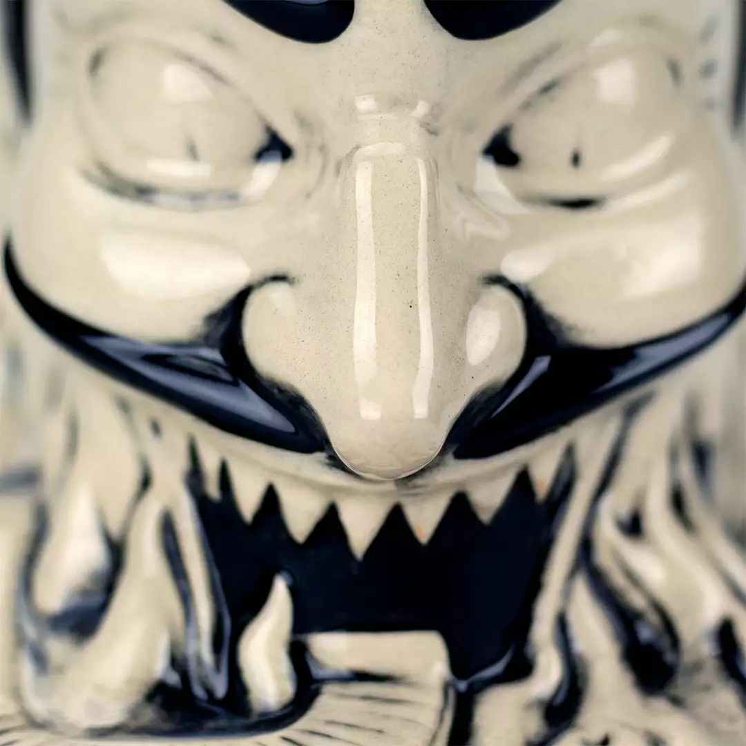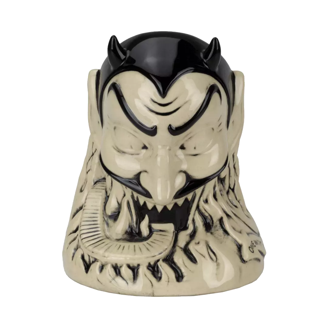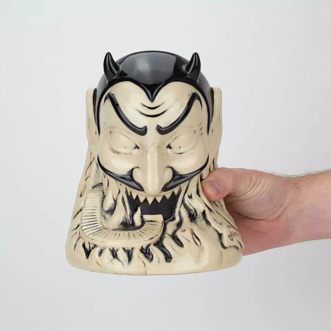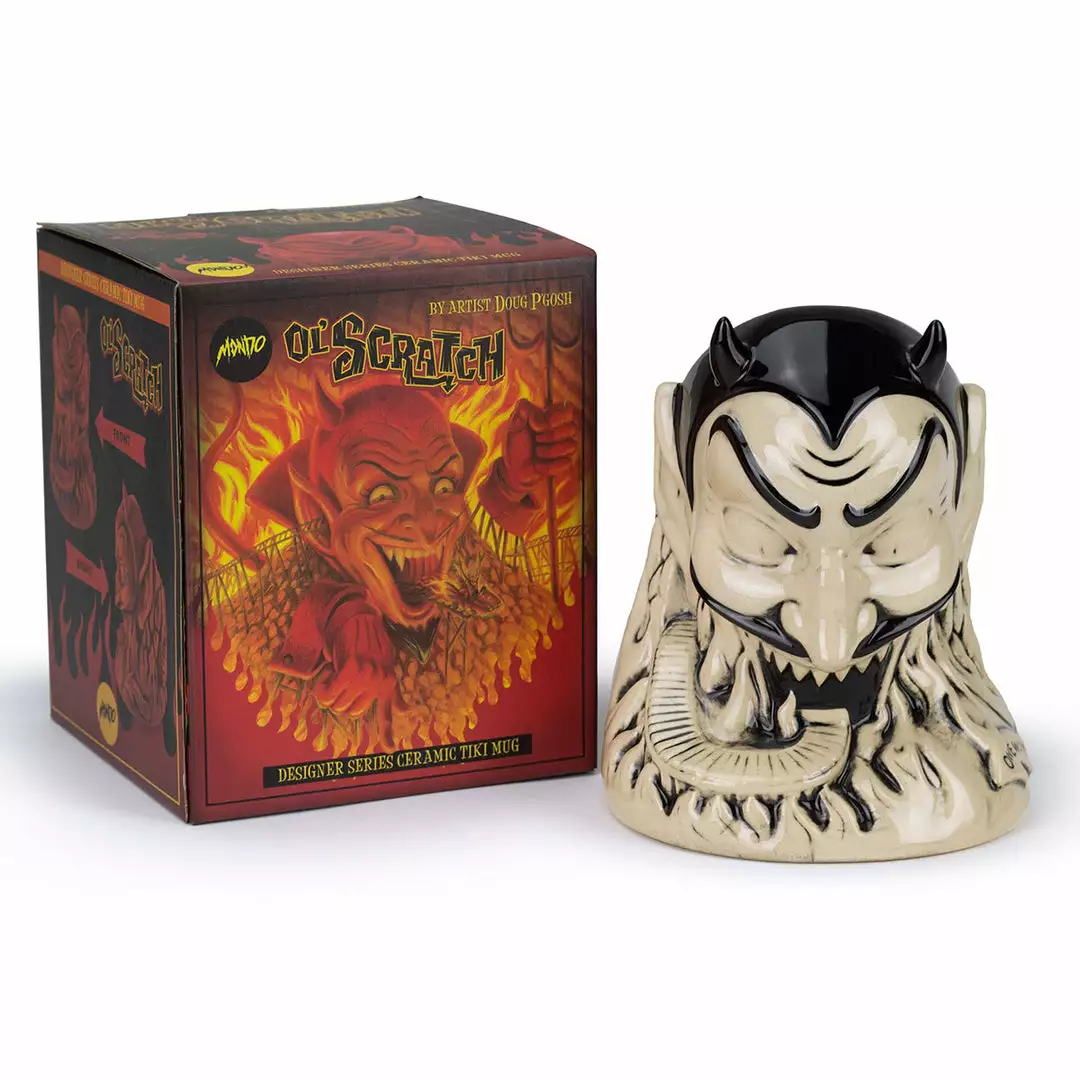 From artist Doug P’Gosh and sculptor Tufan Sezer, Ol’ Scratch comes knocking down your door to take you to Tiki Hell. Fit for a carnival, this punch bowl-sized terror stands at approx. 7.25” tall and holds 32 oz.