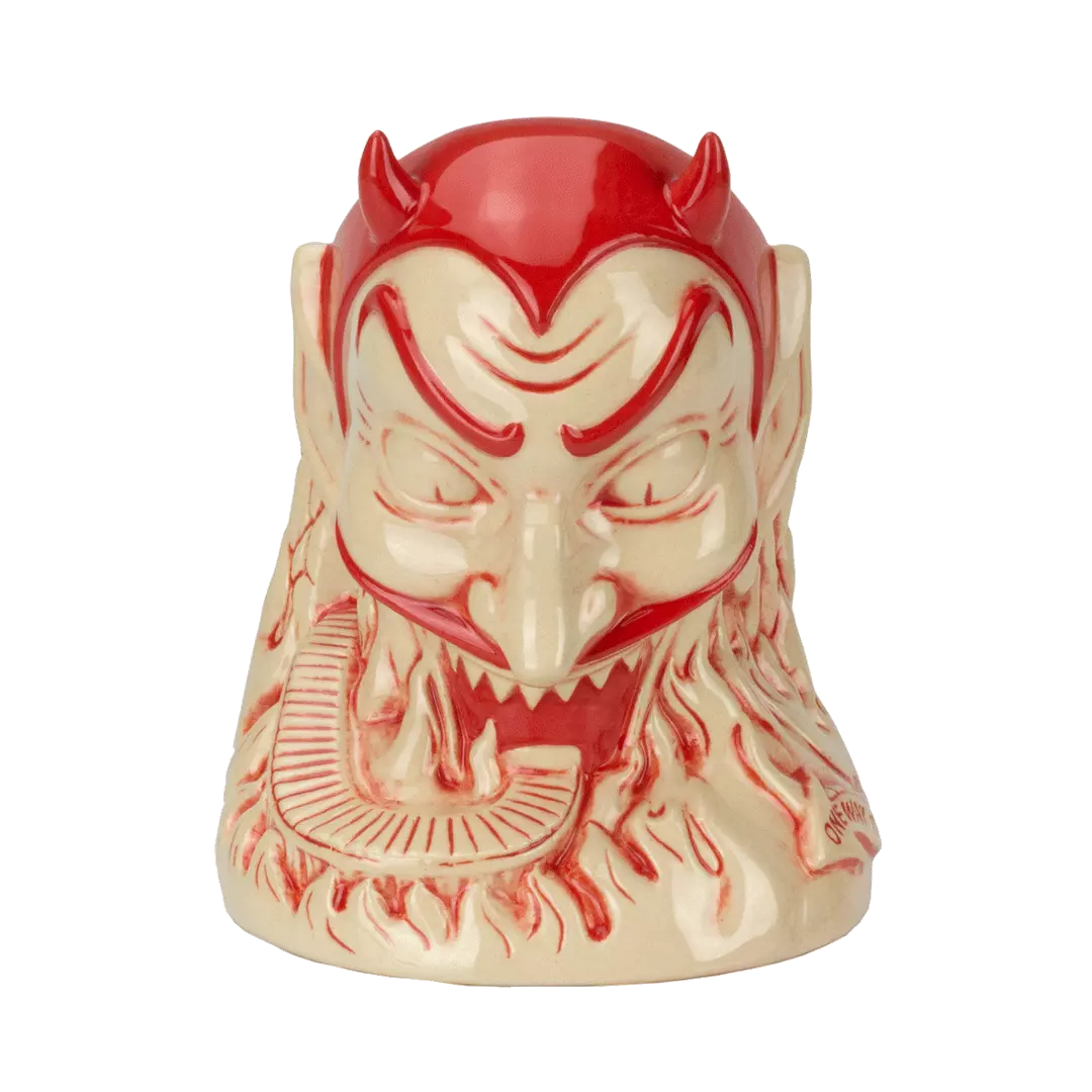 From artist Doug P’Gosh and sculptor Tufan Sezer, Ol’ Scratch comes knocking down your door to take you to Tiki Hell. Fit for a carnival, this punch bowl-sized terror stands at approx. 7.25” tall and holds 32 oz.