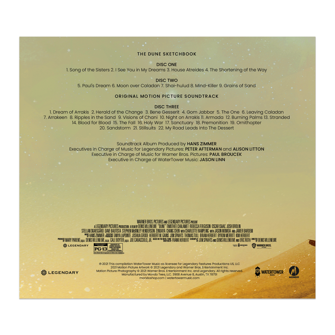 Deluxe 3XCD Digipack, featuring THE DUNE SKETCHBOOK and THE COMPLETE ORIGINAL SOUNDTRACK, packaged with a 20-page collectors booklet.
