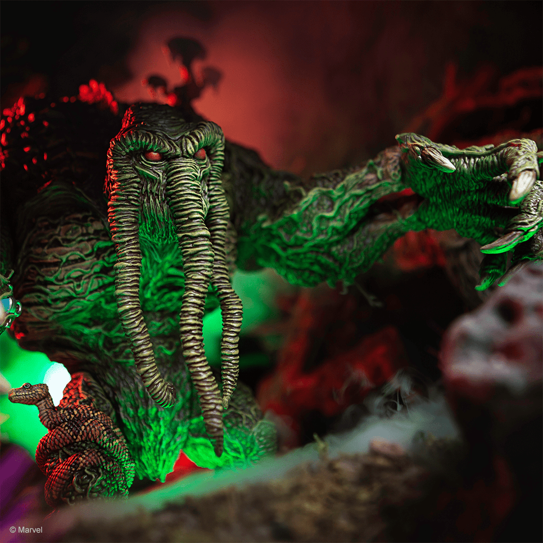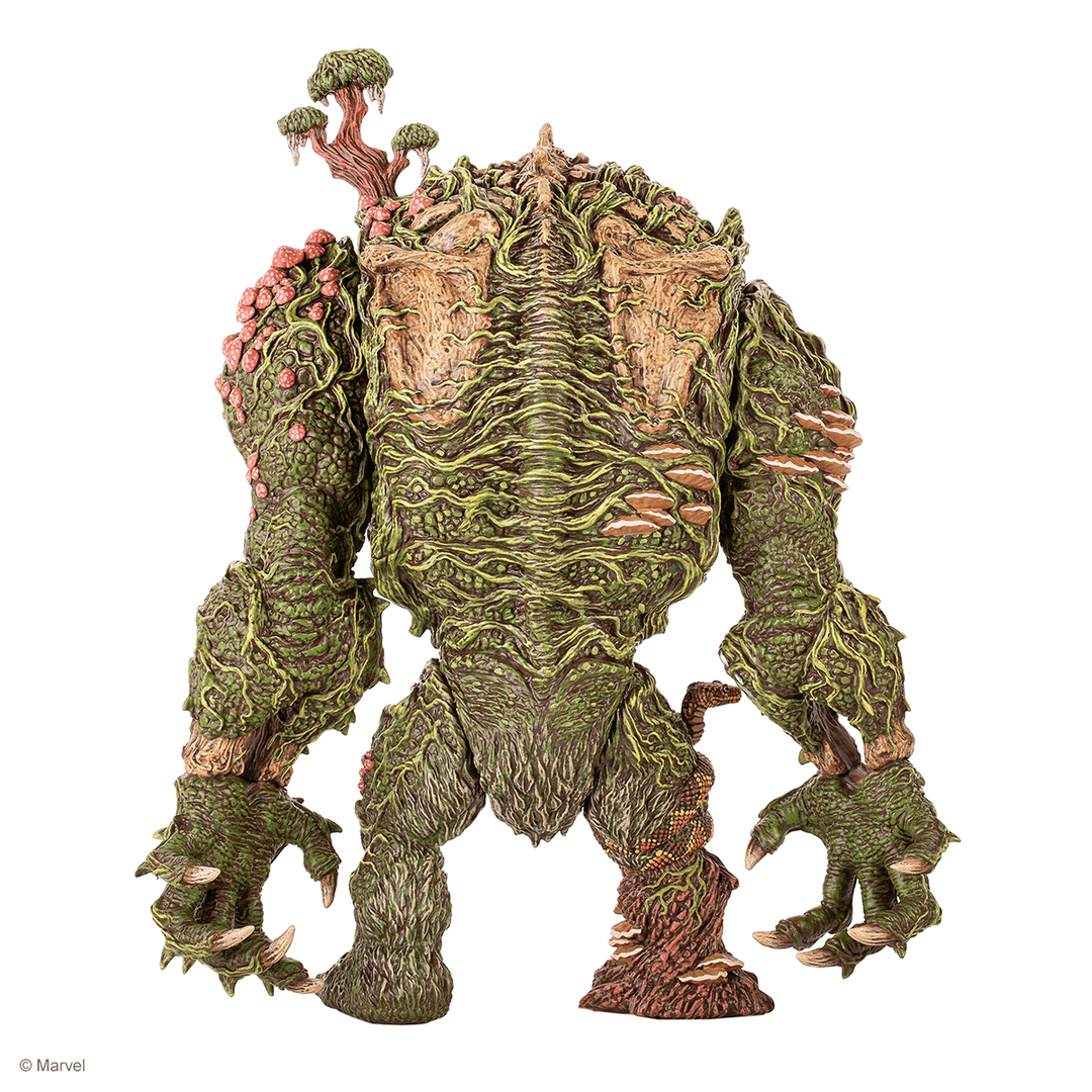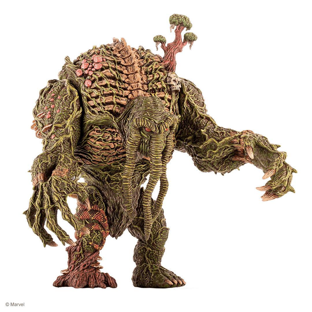 Emerging from the swamp, it’s Marvel’s Man-Thing! This exciting collaboration with famed toy Designer James Groman (Madballs, Kaiju Killer, King Korpse) brings his unique style to full display with this limited edition Man-Thing Soft Vinyl Figure. With 3 Points of articulation, this massive 12 inch tall figure is a sight to behold. James poured so much thought into this sculpture that you can get lost in the details for hours.
