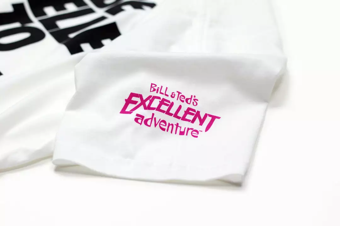 Artwork inspired by Bill & Ted’s Excellent Adventure, designed by Matt Ryan Tobin. Printed by Impact Merchandising on Next Level 3600 cotton tees with printed interior label.