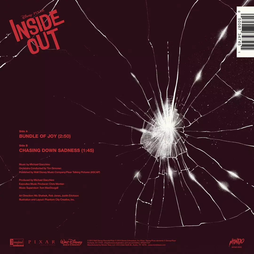 Mondo in collaboration with Walt Disney Records is proud to present the Inside Out 7-Inch Single series. Each featuring Michael Giacchino’s theme from Disney•Pixar’s Inside Out “Bundle Of Joy” and a exclusive B-Side. Featuring artwork by Phantom City Creative, inspired by classic album covers.