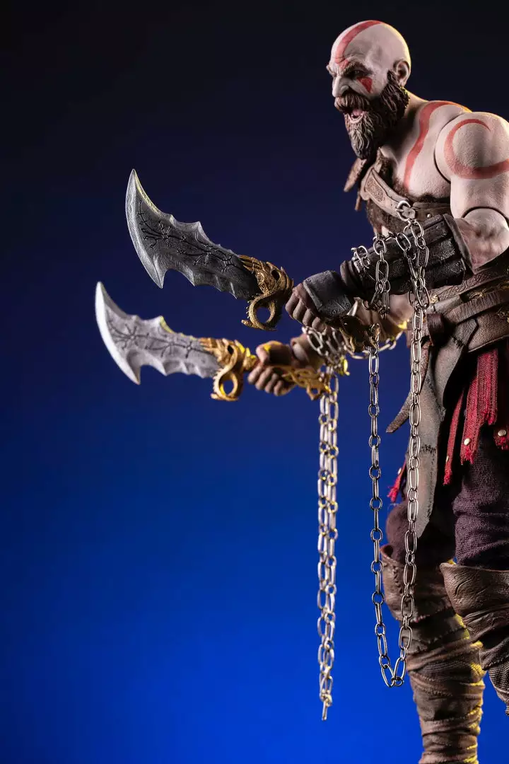 From the heights of Mt. Olympus, to the shores of Midgard, Kratos cleaves his way into 1/6 scale for this first time! This deluxe figure features 25+ points of articulation, real fabric belts, pants, apron, and ptergues. In addition to Mimir and the Leviathan Axe, Kratos features several weapons, such as his Blades of Chaos with chains, interchangeable heads, hands, and much more!