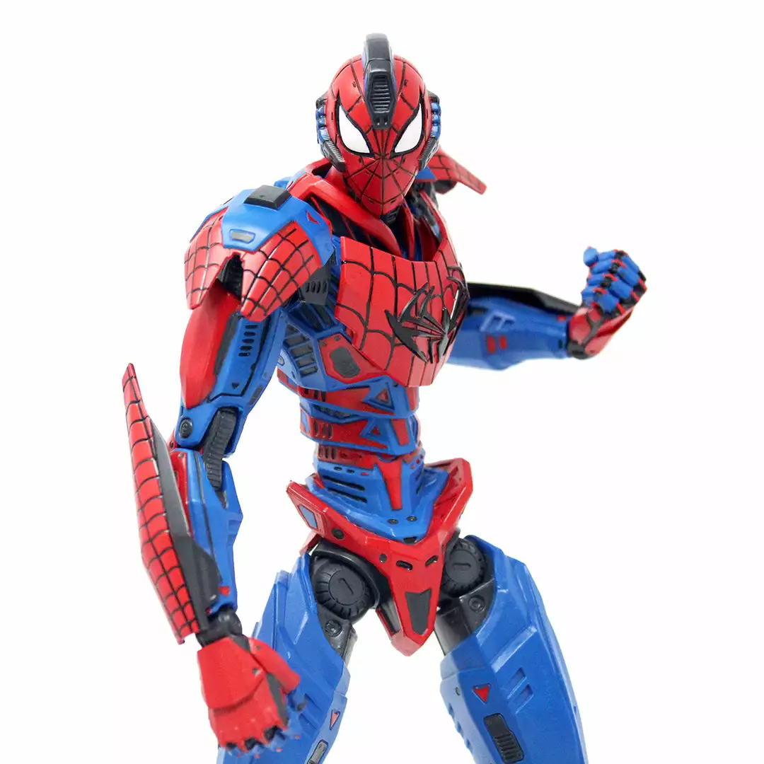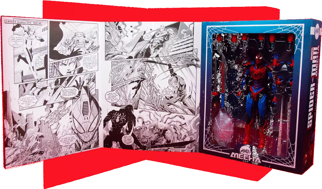 After three years of development, we are proud to officially unveil the first figure in our Marvel Mecha line: Spider-Man Mecha; inspired by our love for Manga and Japanese Mecha designs from the 80s and 90s. Peter Parker jumps into the 100-foot Spider-Man Mecha to battle giant sized intergalactic threats! Join in the battle by collecting your very own replica of Peter’s famed Mecha. With over 30 points of articulation, many accessories including a web shield, web attacks and two swords. This 10-inch replica is the perfect way to show your support to the cause and take the fight to those giant sized threats! All in the comfort of your living room. Collect your own figure and find out the backstory surrounding Peter’s giant 100 FT Mecha!